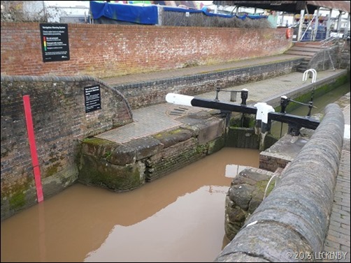 In 1781 a second link to the river was built with two pairs of staircase narrow locks. Today the street lights echo the shape of the cranes that once used to surround the basins.