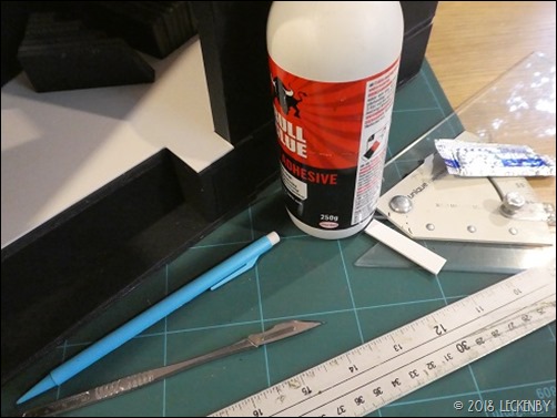 Mick had a look at the solar panel to see if he’d need any more connectors before we move away from Springwood Haven as they have a stock of such things. I dug out my model making box and cutting mat and started to make alterations to the model box I’d been given. Sadly at some point dimensions on the plans had gone wrong and the model had been made from these. So first job was to shrink the proscenium, but is that really the only measurement that was wrong? From what datum were other measurements taken? Are the walls that will restrict entrances in the right places? Without being in the theatre with a tape measure myself and double checking various things, it’s impossible to know, but that will have to wait until my next meeting. Then once I’d decided to go with what I now had I noticed there was a mistake in the model which also needed altering.